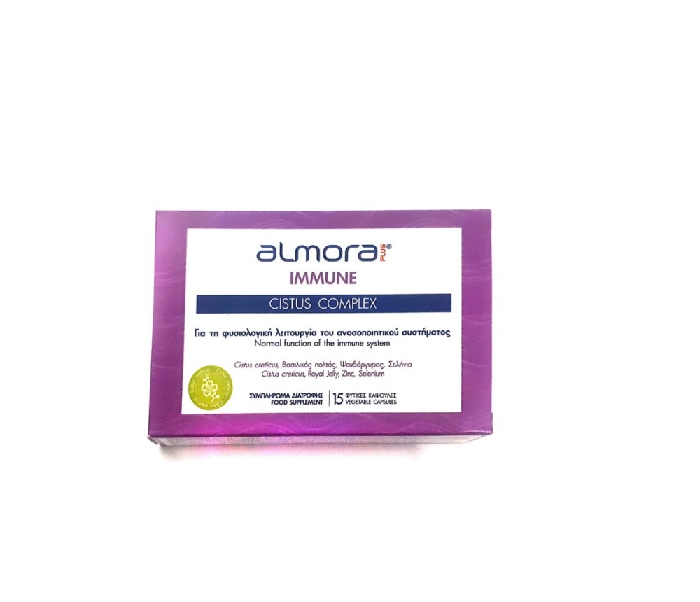 Το Elpen Almora Plus Immune Cistus Complex είναι ένα συμπλήρωμα διατροφής με ειδικά μελετημένη σύνθεση που περιέχει τιτλοποιημένο εκχύλισμα Λαδανιάς (Cistus creticus), βασιλικό πολτό, καθώς και ψευδάργυρο και σελήνιο που συμβάλλουν στη διατήρηση της φυσιολογικής λειτουργίας του ανοσοποιητικού συστήματος.