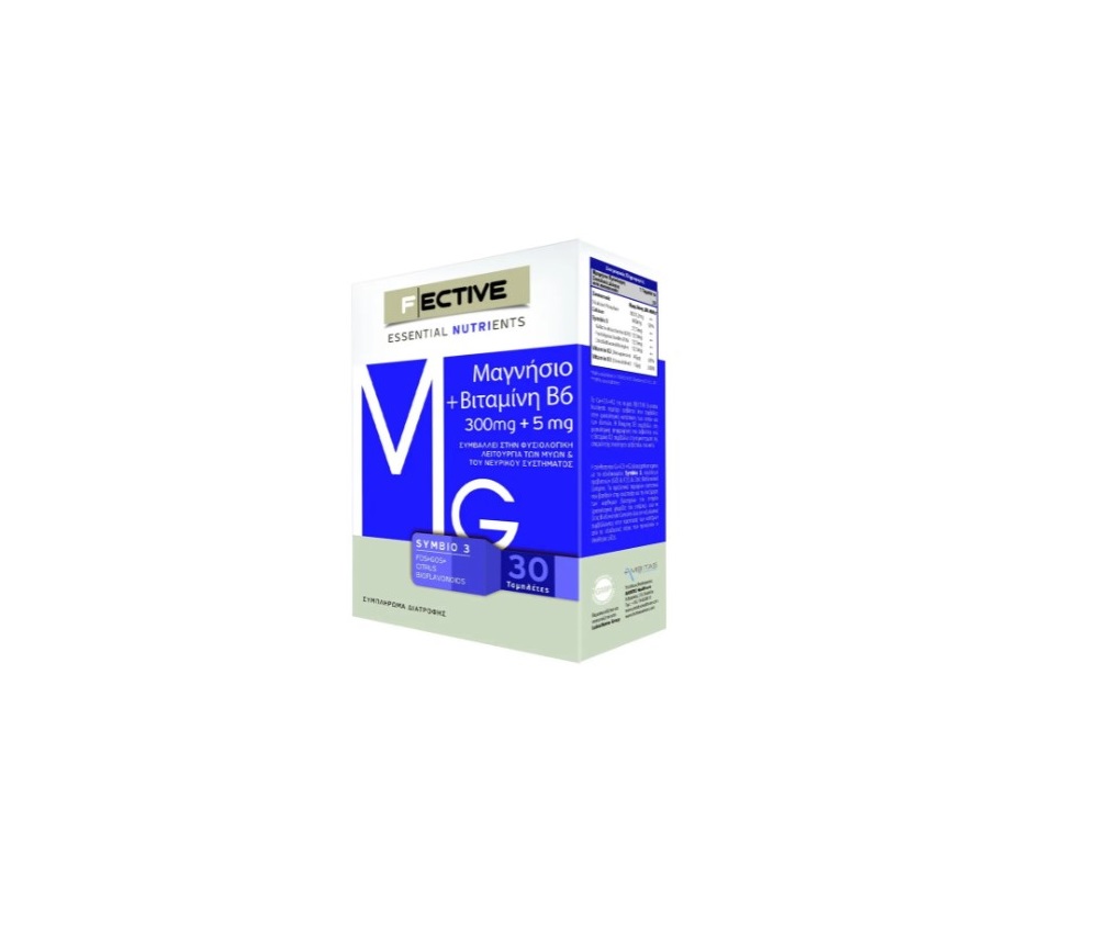 Το F Ective Magnesium B6 είναι ένα συμπλήρωμα διατροφής με μαγνήσιο και βιταμίνη Β6. Το Μαγνήσιο είναι σημαντικό για τη μετάδοση πληροφοριών από τα νεύρα στους μύες και συμβάλει στη φυσιολογική λειτουργία των μυών και του νευρικού συστήματος. Η έλλειψη μαγνησίου σχετίζεται με έντονους πονοκεφάλους και κράμπες. Η Bιταμίνη Β6 παίρνει μέρος σε όλες σχεδόν τις βιοχημικές διαδικασίες των κυττάρων του οργανισμού μας και επηρεάζει την ψυχική και σωματική υγεία περισσότερο από κάθε άλλη διατροφική ουσία. Επίσης, η βιταμίνη Β6 λειτουργεί συνεργιστικά με το μαγνήσιο αυξάνοντας την απορρόφηση του από τον οργανισμό.